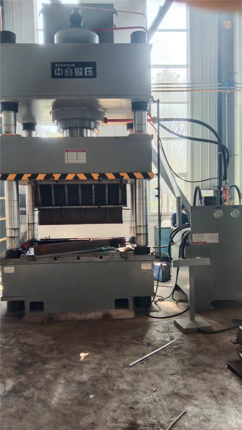 630噸金屬折彎壓型液壓機是用于金屬厚板的折彎壓型的設備,整體采用三梁四柱結構,利用金屬的延展性,通過模具將厚板壓型折彎。如下圖: